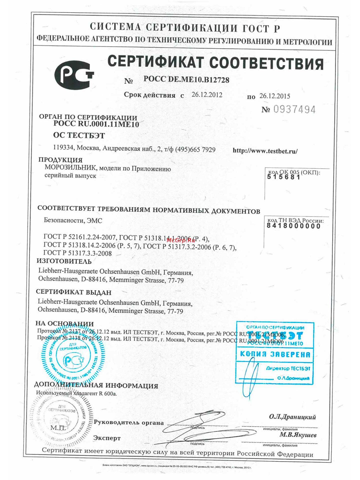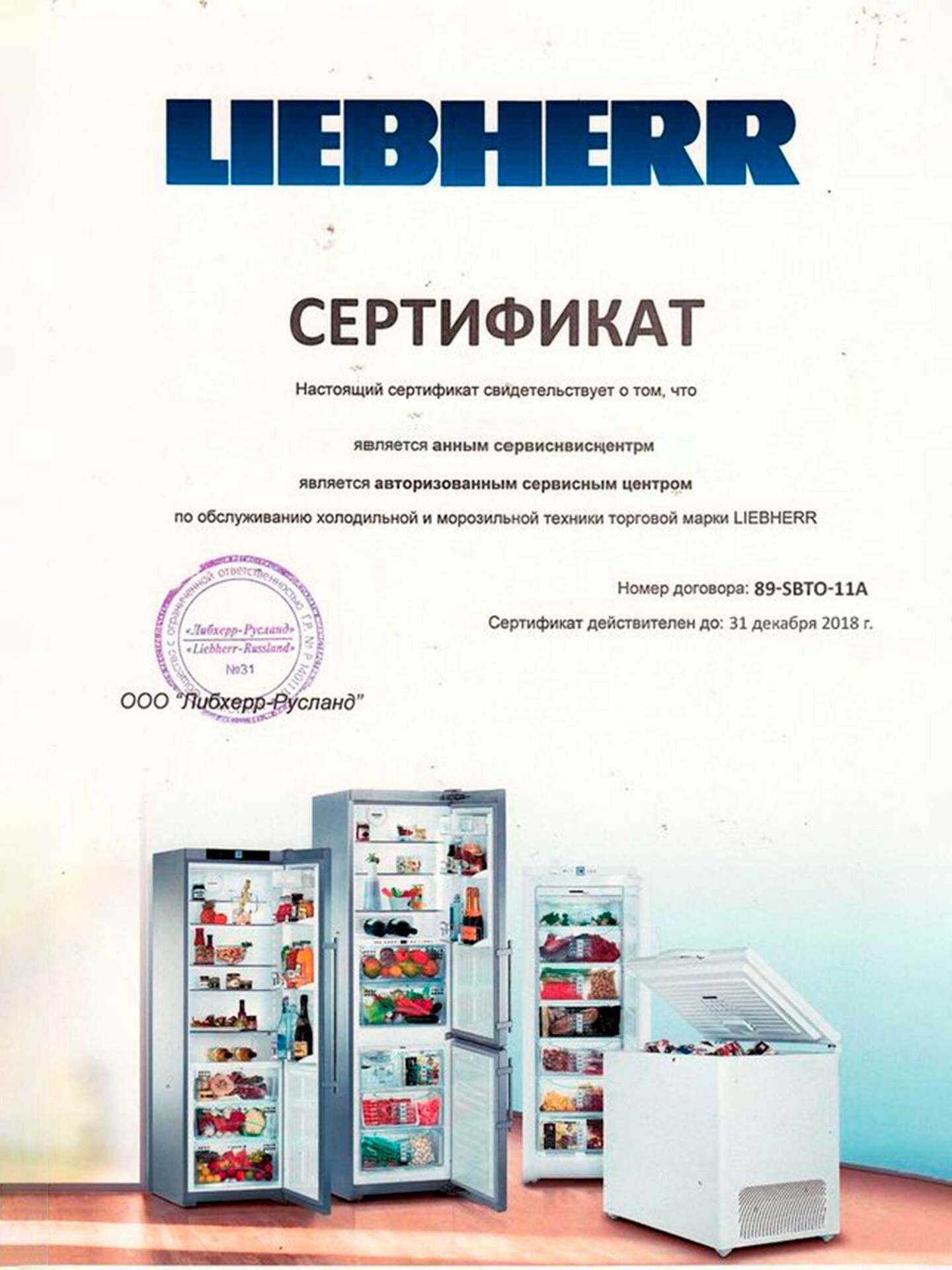 подтверждающие прохождение подготовки по работе с бытовой техникой Liebherr